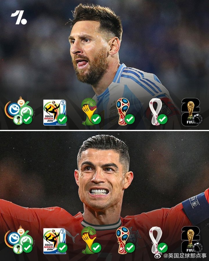 如果梅罗都能出战2026世界杯,将成史上首批六次参加世界杯的球员